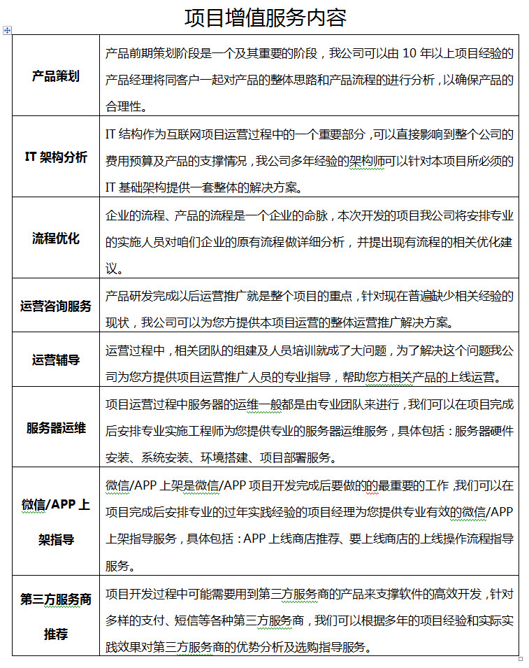 八大增值服务展示: