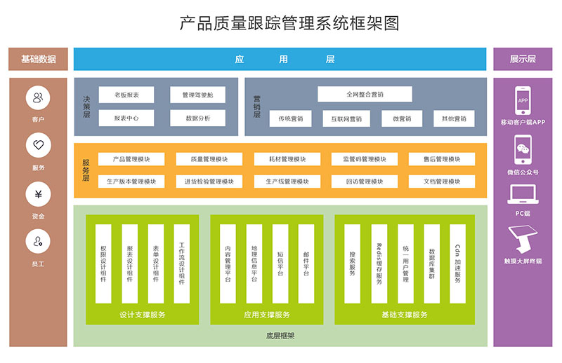 适合制作业的产品质量跟踪管理系统从产品条码录入、装箱、质量检查、产品入库、产品出库、产品维修、维修跟踪等一整套流程记录跟踪管理。实现了物资从进厂到使用进行连续、系统、有效的控制。质量跟踪系统使用简单、方便、准确和快捷。通过数据的采集、管理、检索、存档和统计实时化,质量信息和动态地反映生产现状使生产管理者能及时、准确、全面地了解生产情况。