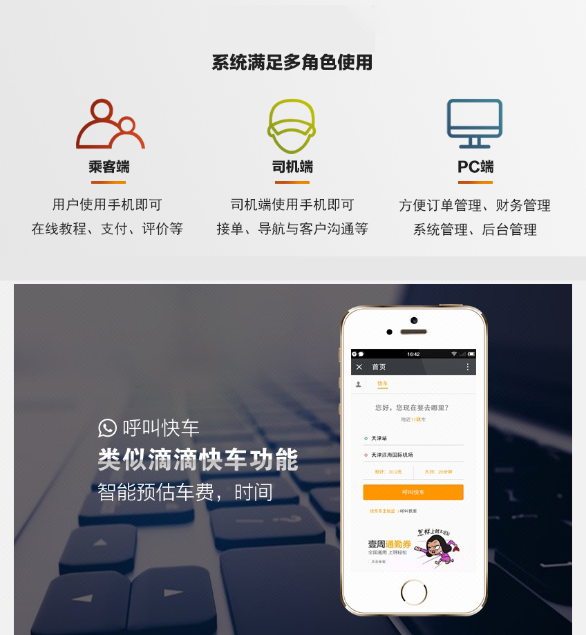 网约车系统网约车乘客端的核心功能为地图定位、一键叫车、语音叫车、专车分类、预约用车、预估价格、在线支付、订单评价,投诉,司机端则包含司机认证、抢单操作、在线导航、订单管理、我的钱包等核心功能。